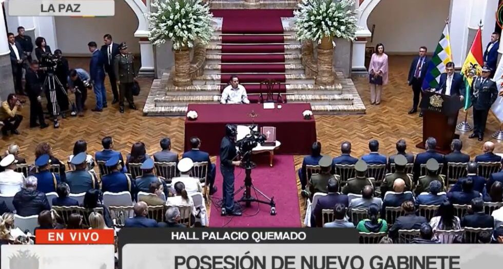 Este es el nuevo gabinete del presidente Rodrigo Paz Pereira: Fernando Aramayo Carrasco, Canciller. José Luis Lupo Flores, Presidencia. José Gabriel Espinoza, Economía y Finanzas. Marco Antonio Oviedo, Gobierno. Marcelo Salinas Gamarra, Defensa. Beatriz Elena Garcia, Educación. Freddy Vidovich, Justicia e interino de Culturas. Marcela Flores Zambrana, Salud. Fernando Romero Pinto, Planificación del Desarrollo. Mauricio Medinacelli Monroy, Hidrocarburos y Energías. Mauricio Zamora Liebers, Obras Públicas. Edgar Morales Mamani, Trabajo. Interinos: Oscar Mario Justiniano Pinto, Desarrollo Productivo ai. José Luis Lupo Flores, Desarrollo Rural y Tierras ai. Sin cartera: Cynthia Yañez, Ministra sin Cartera encargada de Turismo y Deporte.