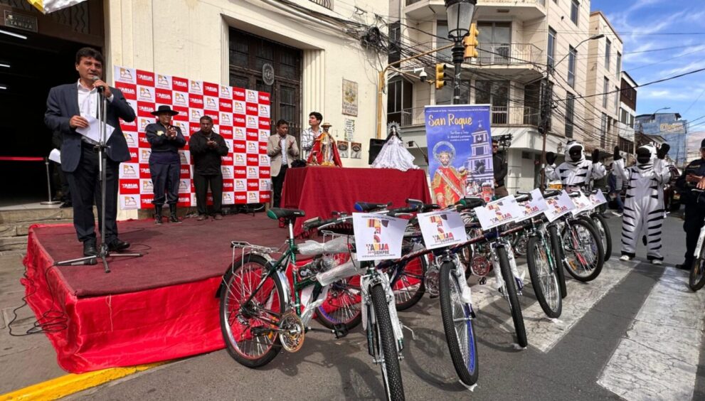 Como todos los años, el alcalde de Tarija, Johnny Torres Terzo, entregó en calidad de donación 30 bicicletas nuevas, para premiar los competidores que participaran en la XXXIV versión de la carrera ciclística San Roque – Chaguaya- San Roque.