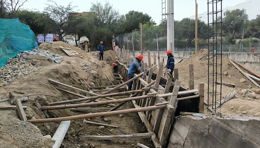 Para garantizar la seguridad de los estudiantes del nivel primario y secundario de la Unidad Educativa Tarija 1, la Alcaldía de Tarija a través de la Secretaría de Infraestructura y servicios públicos avanza con la construcción de un muro de protección en dicho establecimiento educativo.