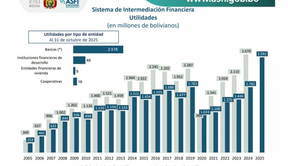 El último informe publicado por la Autoridad de Supervisión del Sistema Financiero (ASFI) sobre las principales variables del sistema financiero boliviano a octubre de 2025 revela cifras récord de utilidades y liquidez, en contraste con la crisis sistémica que afecta a personas y empresas en todo el país.