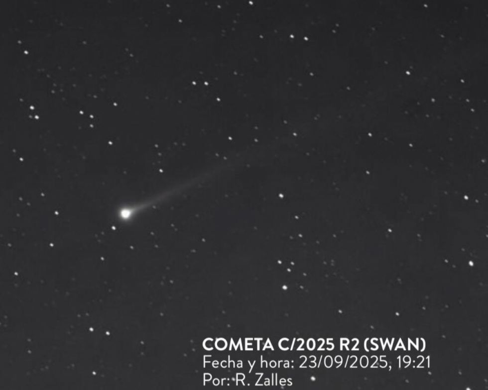 #Local C/2025 R2 (SWAN): el cometa descubierto en septiembre ya se observa desde Tarija El cielo tarijeño fue testigo de un fenómeno astronómico excepcional. El cometa C/2025 R2 (SWAN), descubierto recientemente, fue fotografiado desde plustlt / 4 meses Comentario (0) (254)