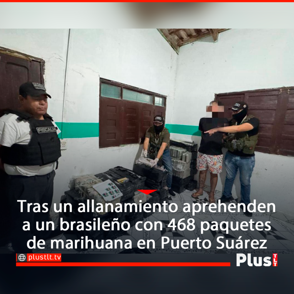 #Nacional Con 468 paquetes de marihuana fue aprehendido un hombre luego de un allanamiento realizado en un alojamiento en el municipio de Puerto Suárez, en Santa Cruz. Efectivos policiales de Umopar, dentro del plan de operaciones 'Vecino Seguro', allanaron el inmueble donde se acopiaba la marihuana, la misma que plustlt / 4 semanas Comentario (0) (110)