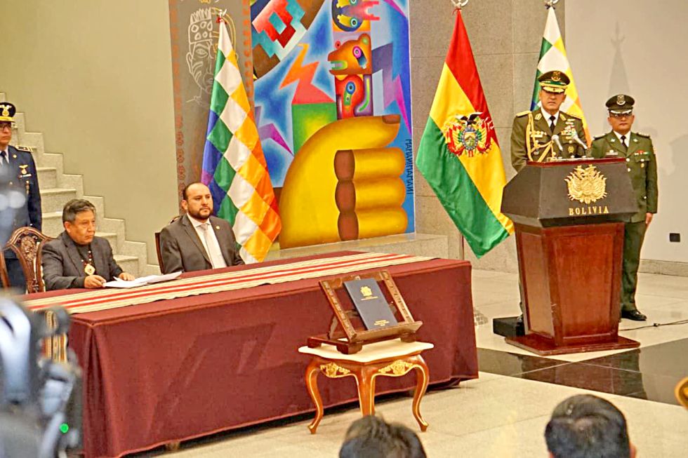 #Nacional Ratifican al Mando Policial y ascienden a generales El presidente en ejercicio, David Choquehuanca, ascendió este jueves a tres generales mayores al grado de General Superior, el máximo plustlt / 4 semanas Comentario (0) (132)