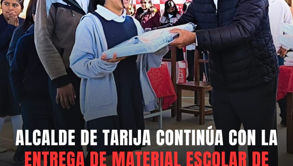 El Alcalde de Tarija, Johnny Torres Terzo, continúa con la entrega de material escolar de apoyo.