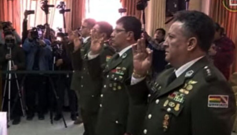 A 22 días de las elecciones generales y mediante un decreto presidencial, el ministro de Gobierno, Roberto Ríos, posesionó este viernes a cuatro nuevos jefes policiales en un acto realizado en la ciudad de La Paz.