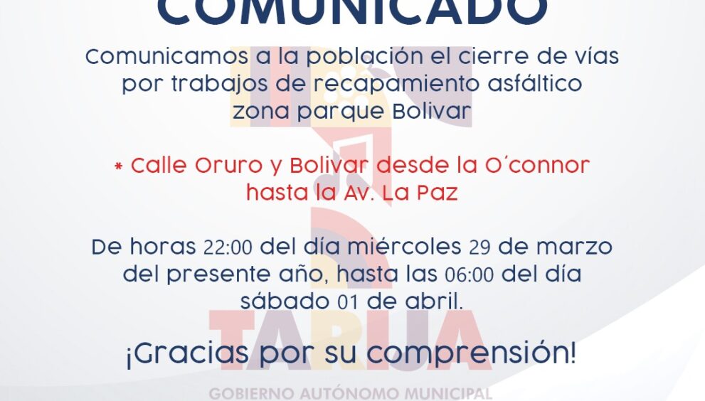 #Alcaldia #Noticias GOBIERNO AUTONOMO MUNICIPAL DE TARIJA INFORMA plustlt / 3 años 29 de marzo de 2023 0 Share: