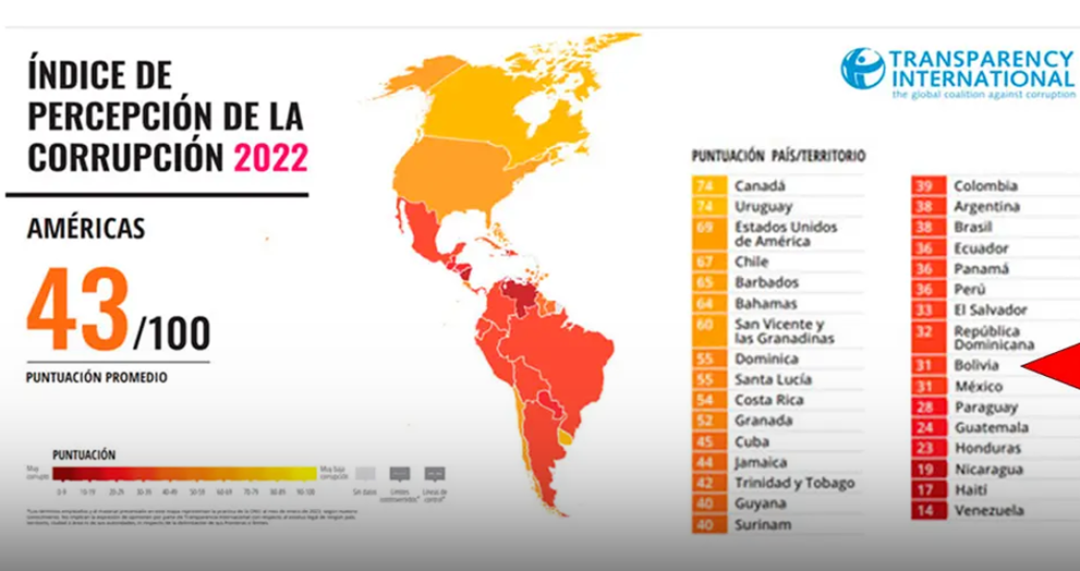 Bolivia ocupa el puesto 136 de 180 en ranking de corrupción internacional