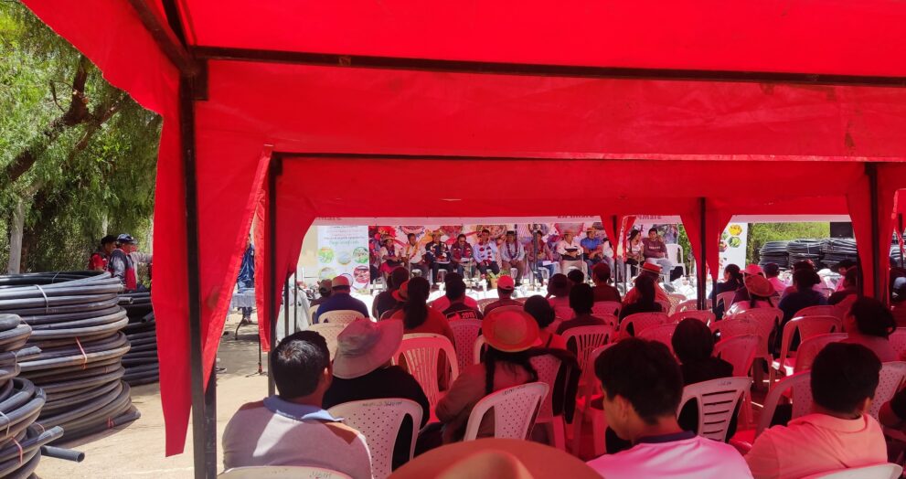 Para garantizar la producción y mejorar las condiciones de vida en el área rural, el alcalde de Tarija, Johnny Torres Terzo, realizó la entrega de materiales para la implementación de sistemas de riego tecnificado, aspersión o goteo, en beneficio de las familias productoras de las subcentrales de Tolomosa y Lazareto.