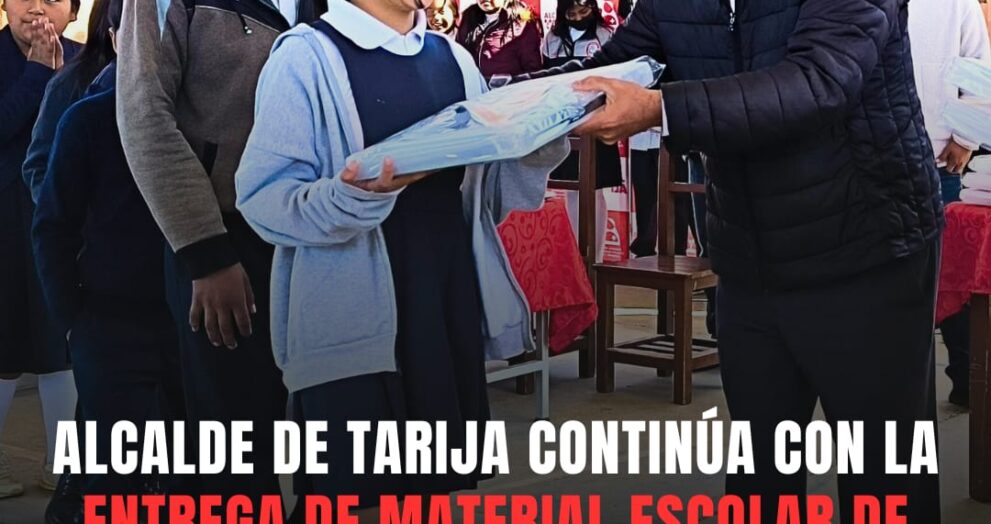 El Alcalde de Tarija, Johnny Torres Terzo, continúa con la entrega de material escolar de apoyo.