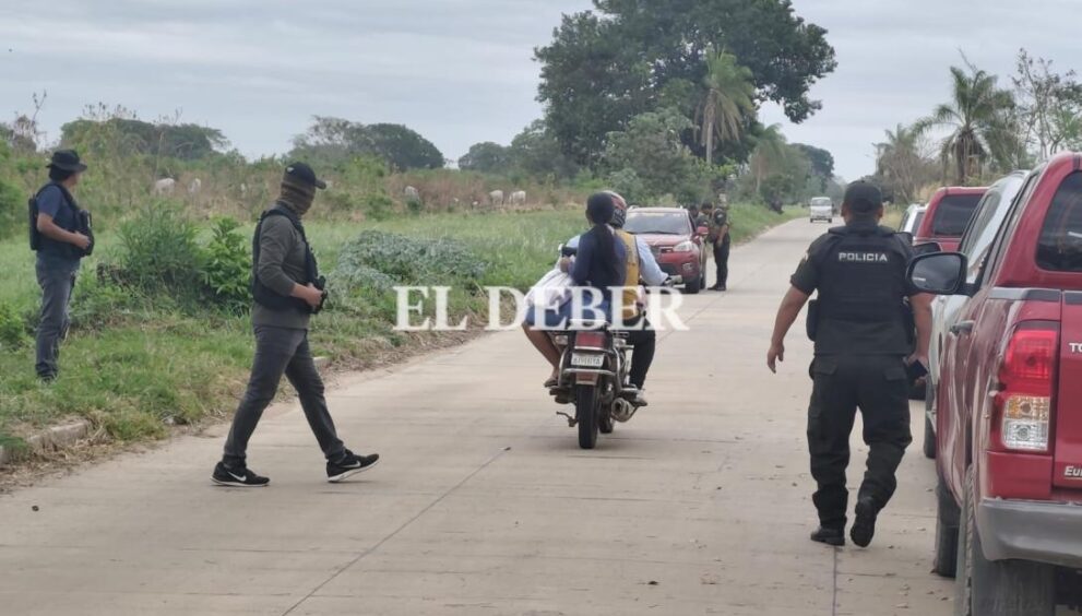 Tras ser emboscados, los efectivos policiales han pedido refuerzo terrestre y áereo para continuar con la búsqueda. Hasta el municipio, llegó un helicóptero y más efectivos policiales que continúan con el operativo en un hangar y orillas del río en la zona del Coloradillo. / EL DEBER